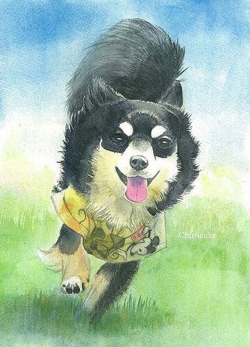 ウォーターフォードホワイト中目F4 透明水彩+色鉛筆 チワワのミッキーさんです。 F4の水彩紙が風邪気味でだましだまし描いたわりには可愛く描けた気が。 ウォーターフォードホワイト中目F4 透明水彩+顔彩+色鉛筆 チワワのミッキーさんとそのご家族です 髪の…