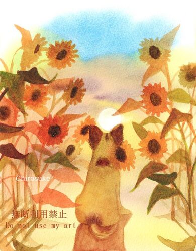 ウォーターフォードホワイト中目F2 透明水彩 「Sunflower Sunset2」 マルマン画用紙A4 ボールペン 水彩で描けなかったオニユリをボールペン画で描いてみました。 セザンヌ荒目A4 透明水彩+ガッシュ 今年もねこと風鈴を描きました。 猫がチェシャ猫みたいに…