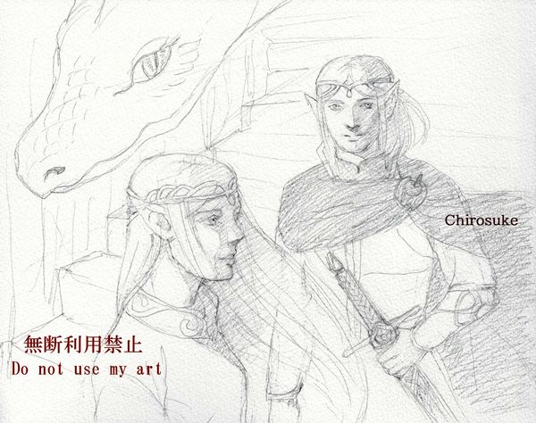 エルフ兄妹。ドラゴンを描くのが一番楽しい。